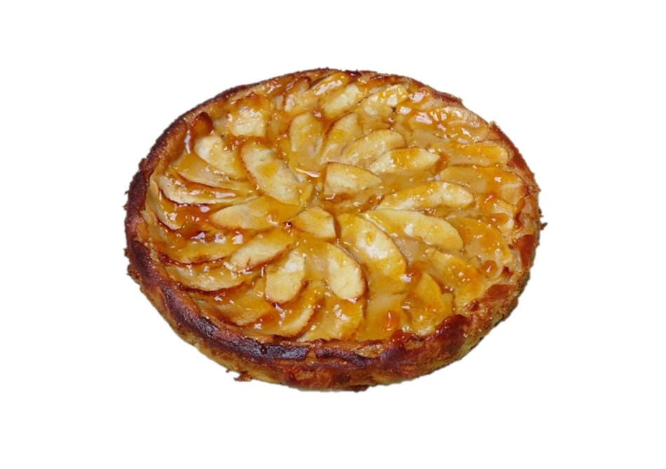 Este clásico de la pastelería se elabora con una base de hojaldre rellena de crema pastelera cubierta por manzanas troceadas y una capa de mermelada de albaricoque.